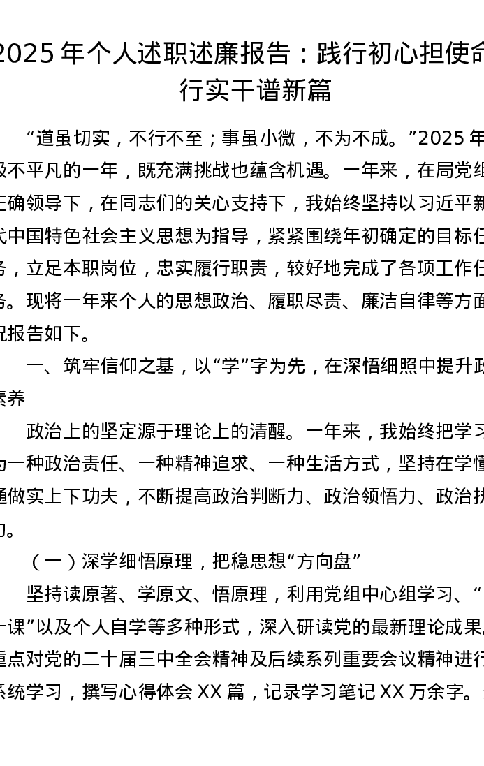 2025年个人述职述廉报告:践行初心担使命 笃行实干谱新篇