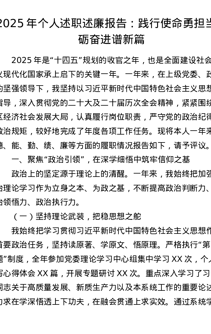 2025年个人述职述廉报告:践行使命勇担当 砥砺奋进谱新篇