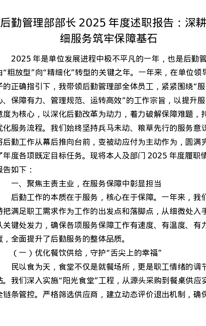 后勤管理部部长2025年度述职报告:深耕精细服务 筑牢保障基石