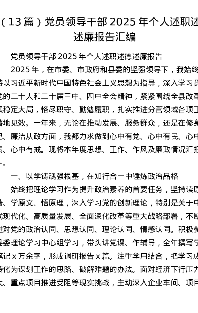 汇编:党员领导干部2025年个人述职述德述廉报告13篇
