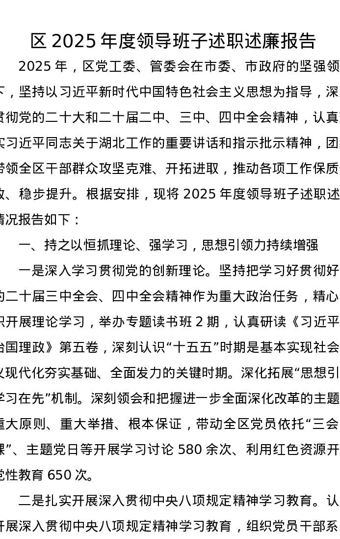 区2025年度领导班子述职述廉报告