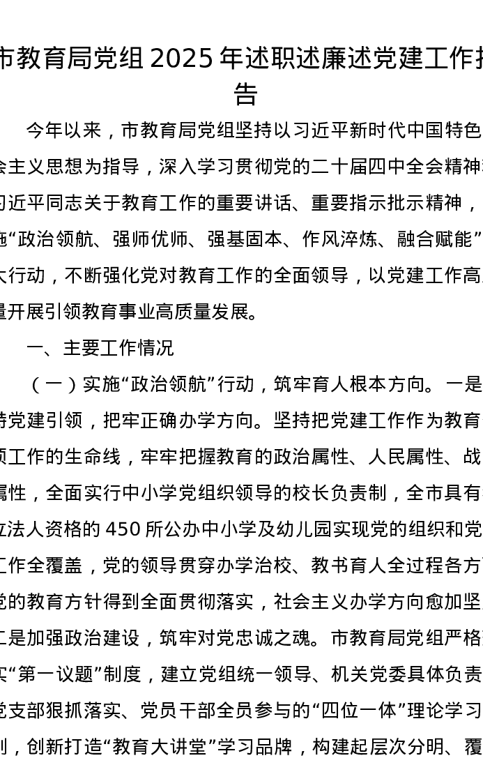 市教育局党组2025年述职述廉述党建工作报告