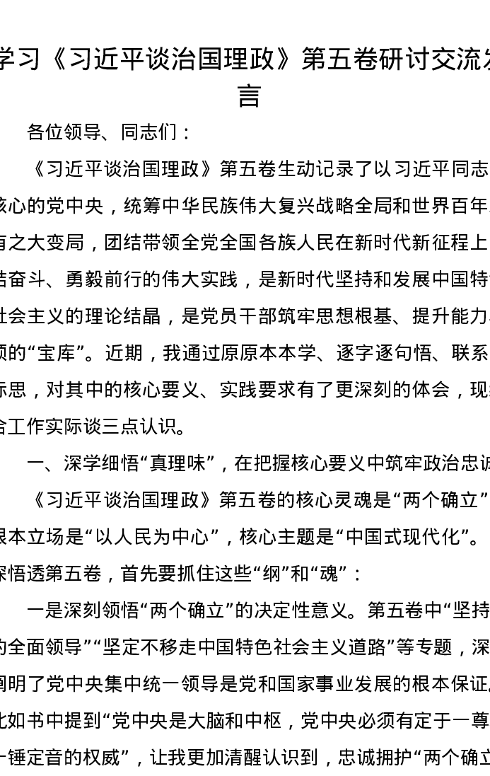 学习《习近平谈治国理政》第五卷研讨交流发言