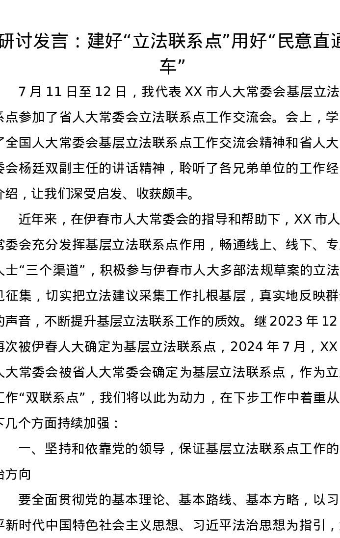 研讨发言:建好“立法联系点”用好“民意直通车”