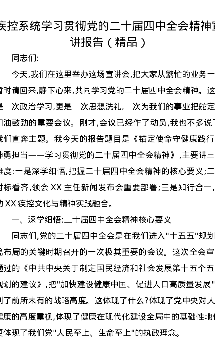 疾控系统学习贯彻党的二十届四中全会精神宣讲报告(精品)