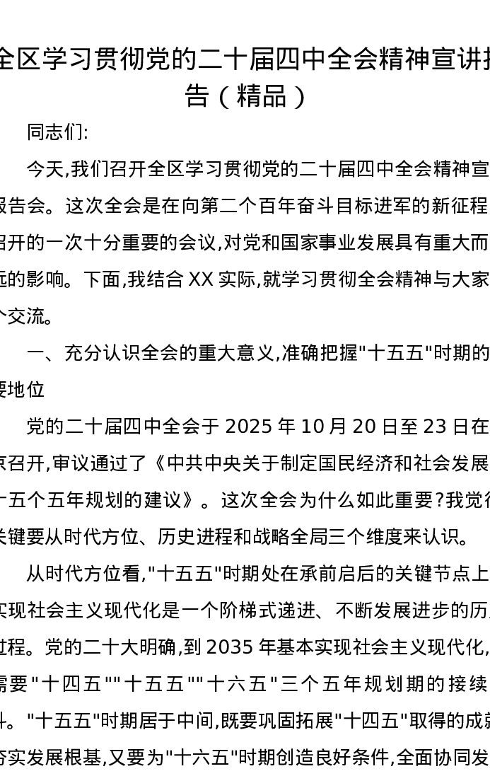 全区学习贯彻党的二十届四中全会精神宣讲报告(精品)