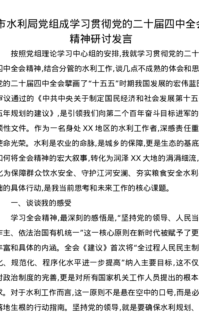 市水利局党组成学习贯彻党的二十届四中全会精神研讨发言