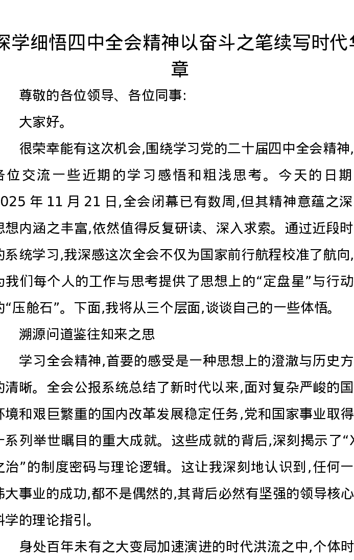 心得体会:深学细悟二十届四中全会精神以奋斗之笔续写时代华章