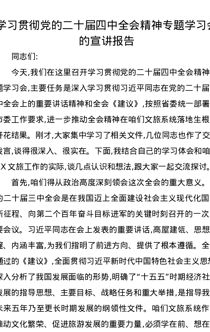 学习贯彻党的二十届四中全会精神专题学习会的宣讲报告