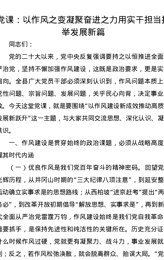 党课:以作风之变凝聚奋进之力 用实干担当托举发展新篇