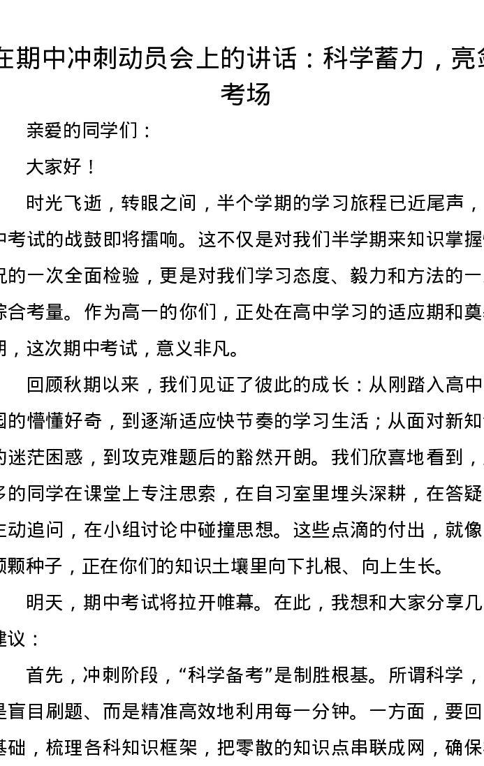 在期中冲刺动员会上的讲话:科学蓄力,亮剑考场