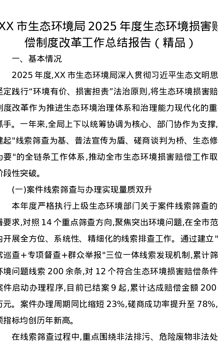 XX市生态环境局2025年度生态环境损害赔偿制度改革工作总结报告