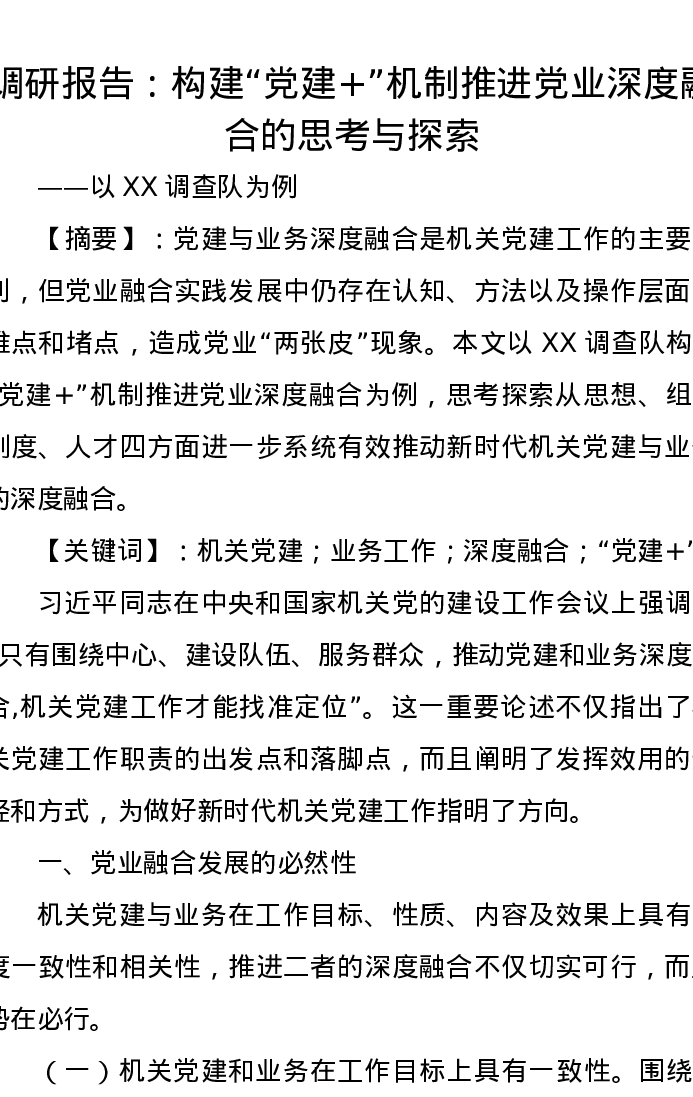 调研报告:构建“党建+”机制推进党业深度融合的思考与探索
