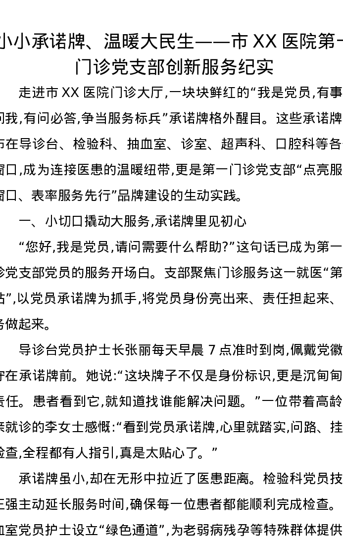 小小承诺牌、温暖大民生——市XX医院第一门诊党支部创新服务纪实