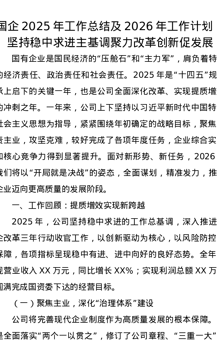 国企2025年工作总结及2026年工作计划:坚持稳中求进主基调 聚力改革创新促发展
