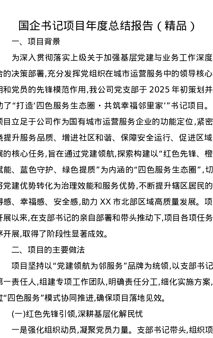 国企书记项目年度总结报告