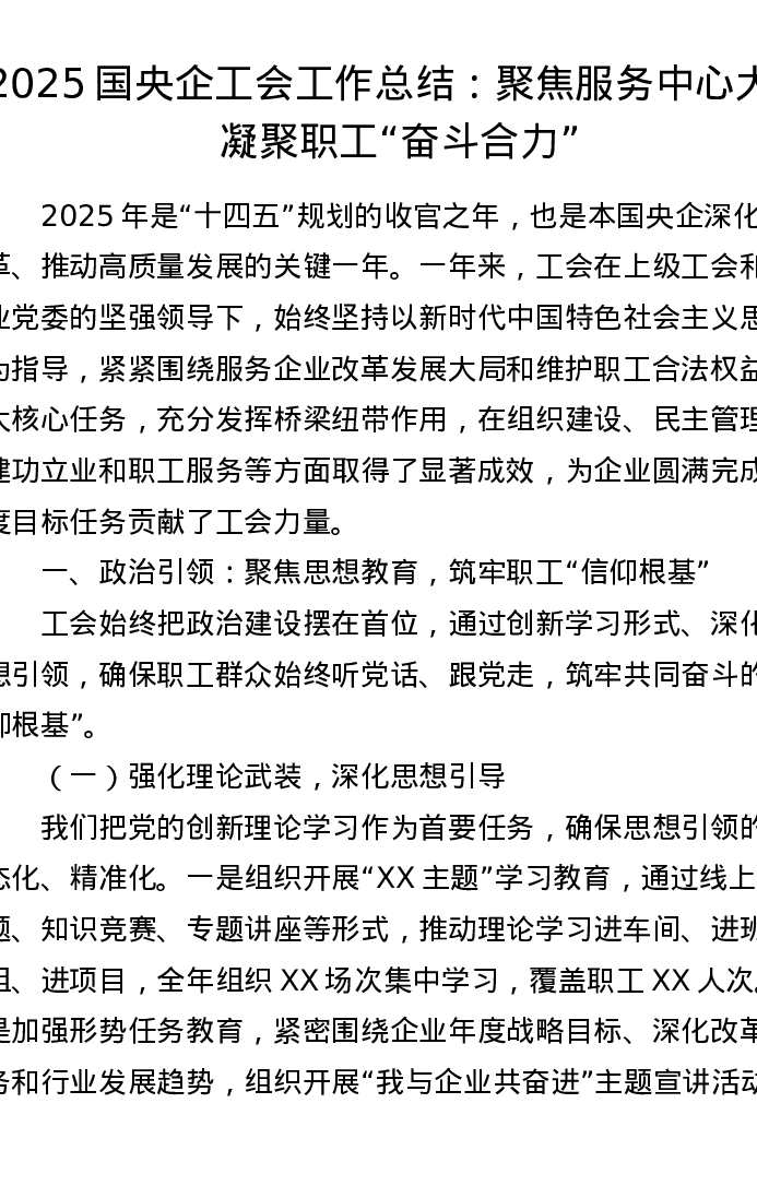 2025国央企工会工作总结:聚焦服务中心大局 凝聚职工“奋斗合力”