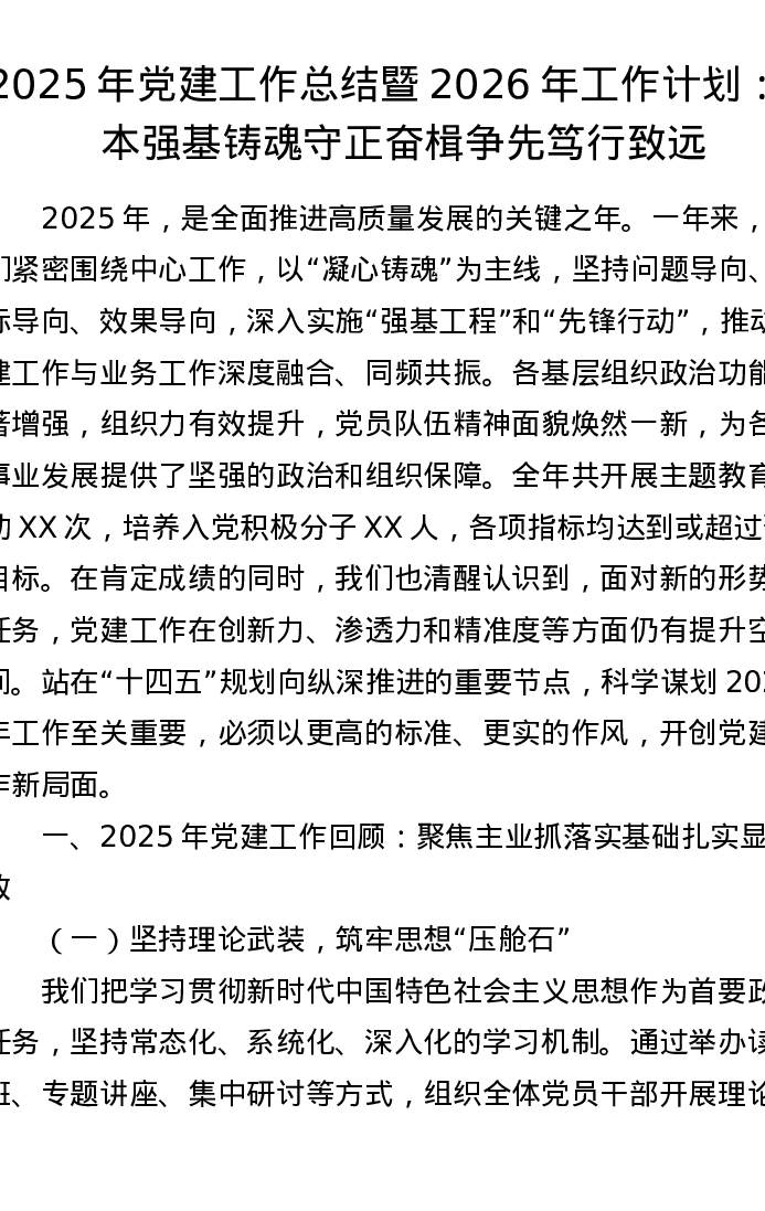 2025年党建工作总结暨2026年工作计划:固本强基铸魂守正 奋楫争先笃行致远
