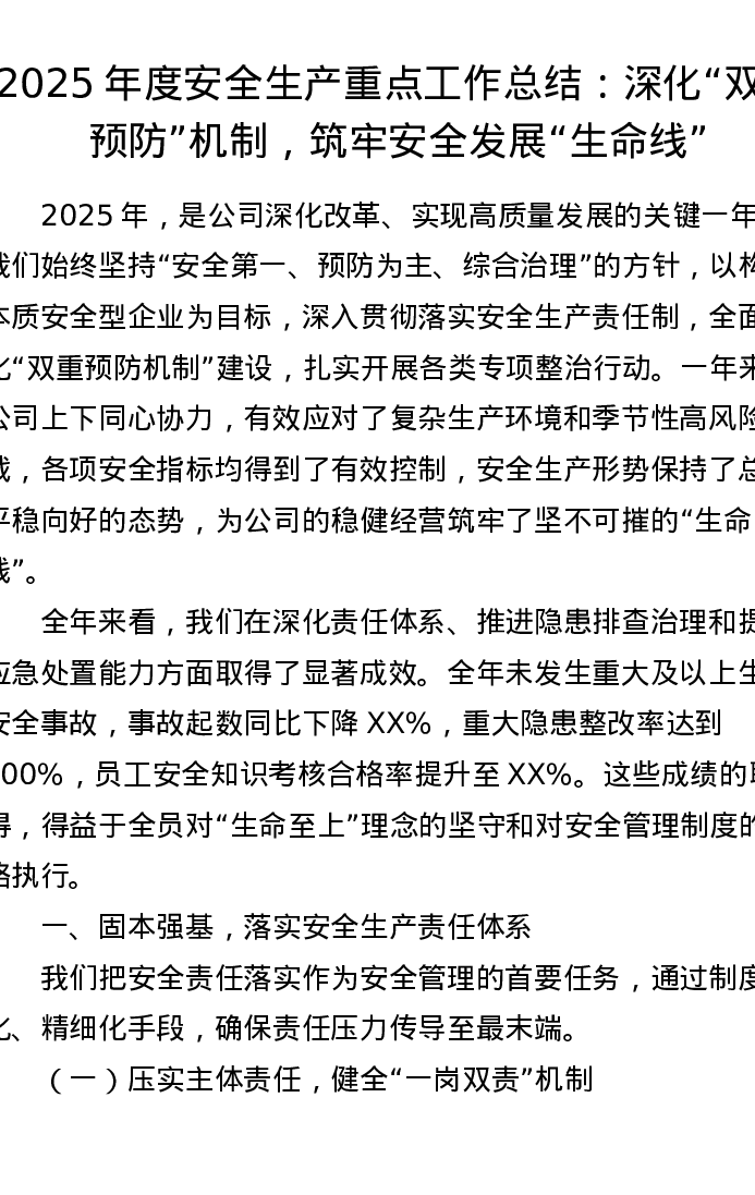 2025年度安全生产重点工作总结:深化“双重预防”机制,筑牢安全发展“生命线”