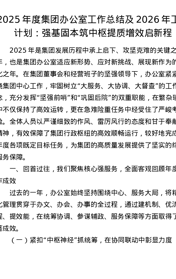 2025年度集团办公室工作总结及2026年工作计划:强基固本筑中枢 提质增效启新程