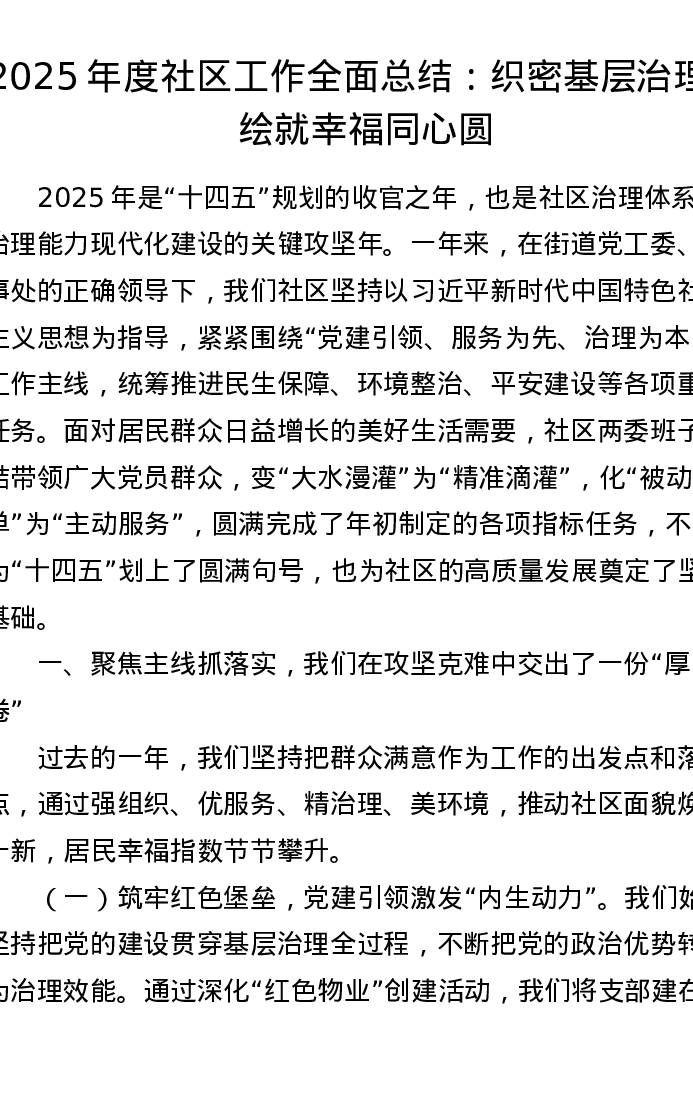 2025年度社区工作全面总结:织密基层治理网 绘就幸福同心圆