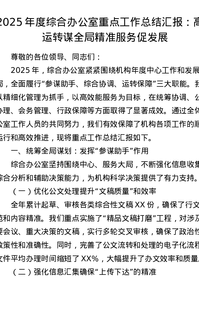 2025年度综合办公室重点工作总结汇报:高效运转谋全局 精准服务促发展