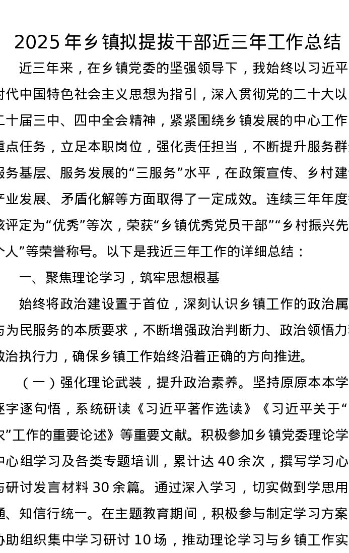 2025年乡镇拟提拔干部近三年工作总结