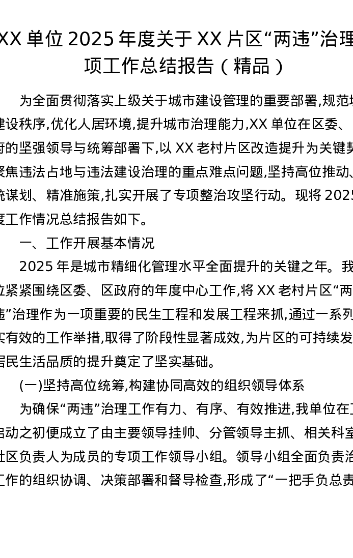 XX单位2025年度关于XX片区“两违”治理专项工作总结报告