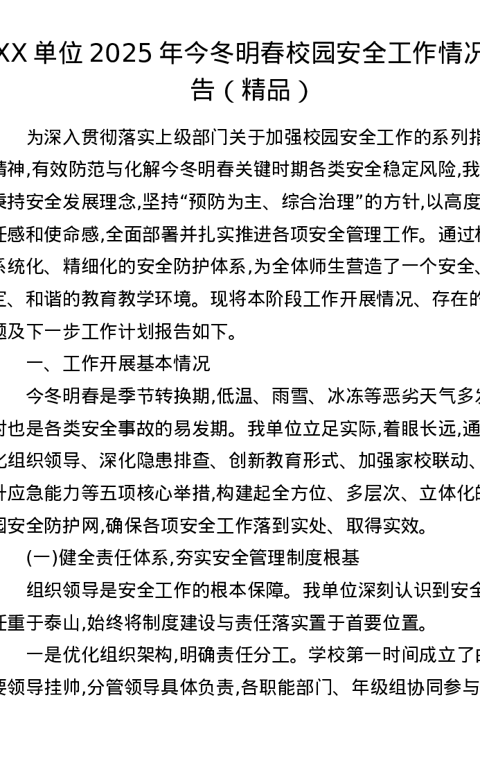 XX单位2025年今冬明春校园安全工作情况报告