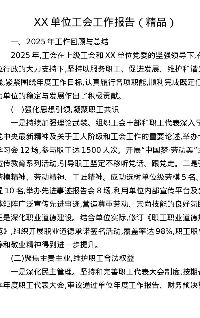 XX单位工会工作报告