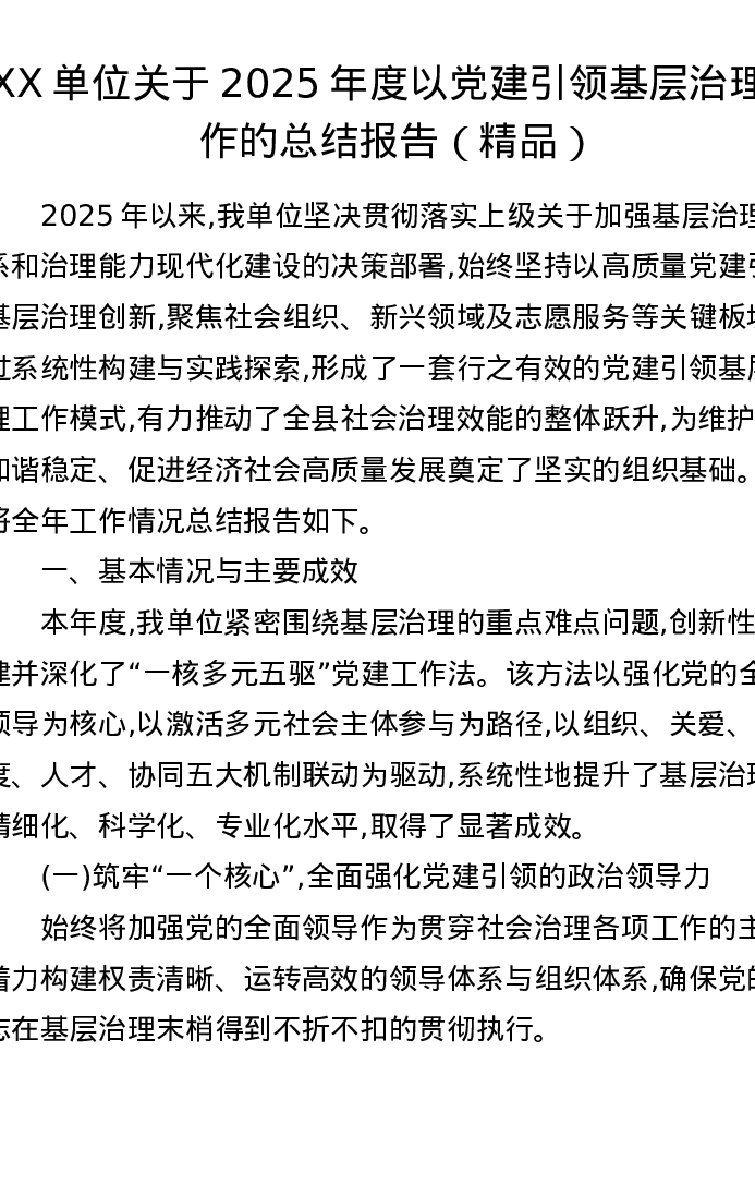 XX单位关于2025年度以党建引领基层治理工作的总结报告