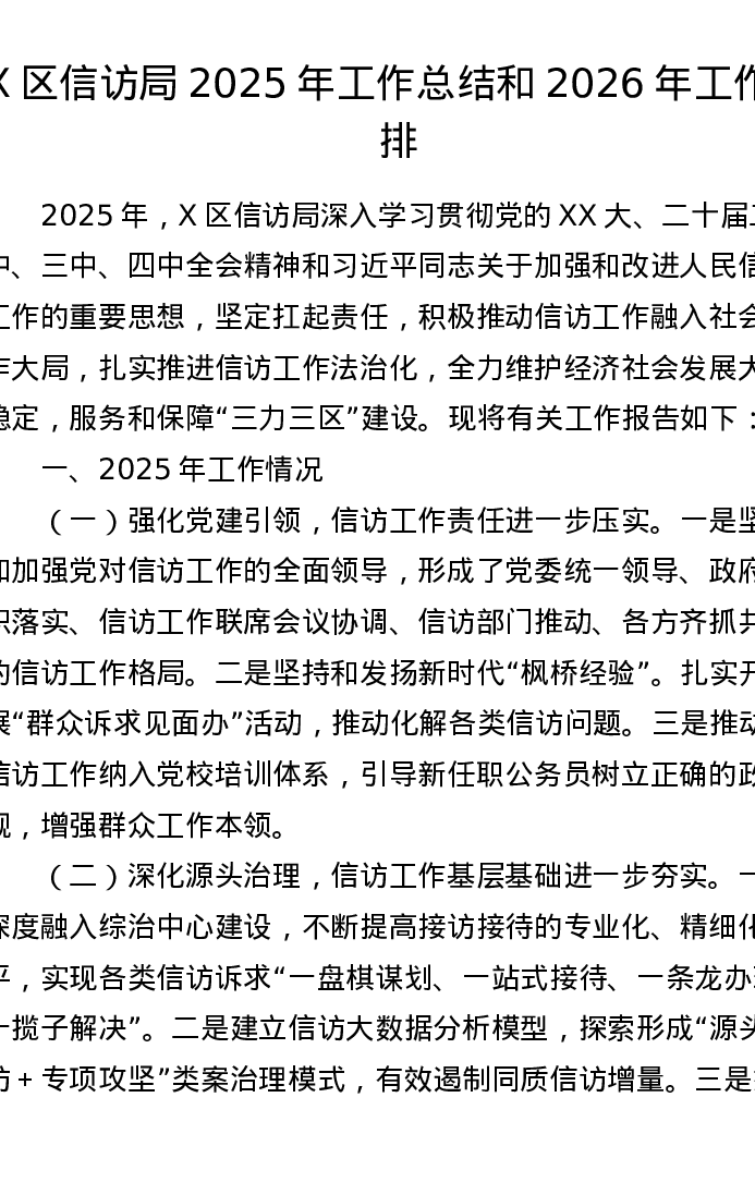 X区信访局2025年工作总结和2026年工作安排