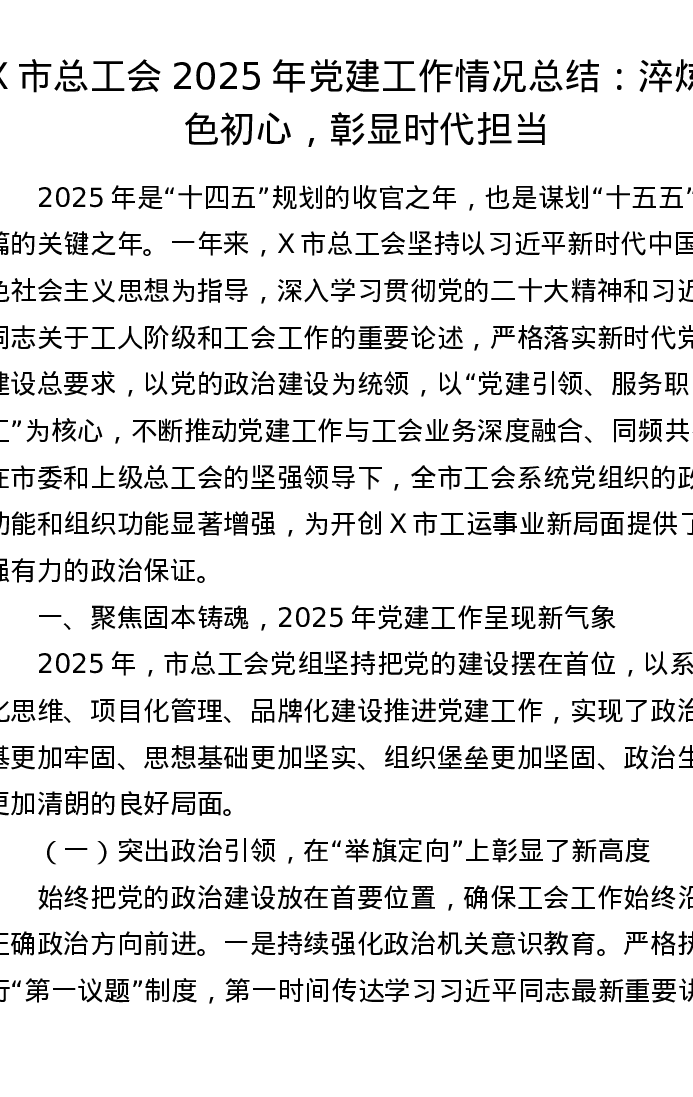 X市总工会2025年党建工作情况总结:淬炼红色初心,彰显时代担当