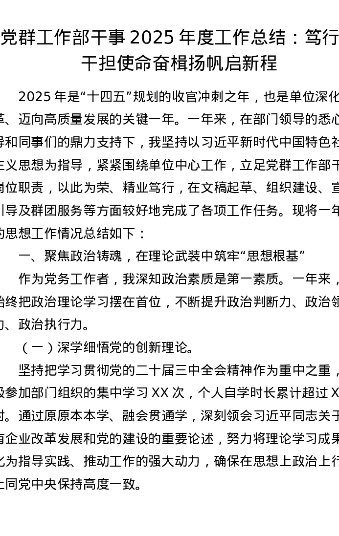 党群工作部干事2025年度工作总结:笃行实干担使命 奋楫扬帆启新程