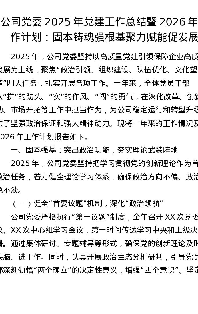 公司党委2025年党建工作总结暨2026年工作计划:固本铸魂强根基 聚力赋能促发展