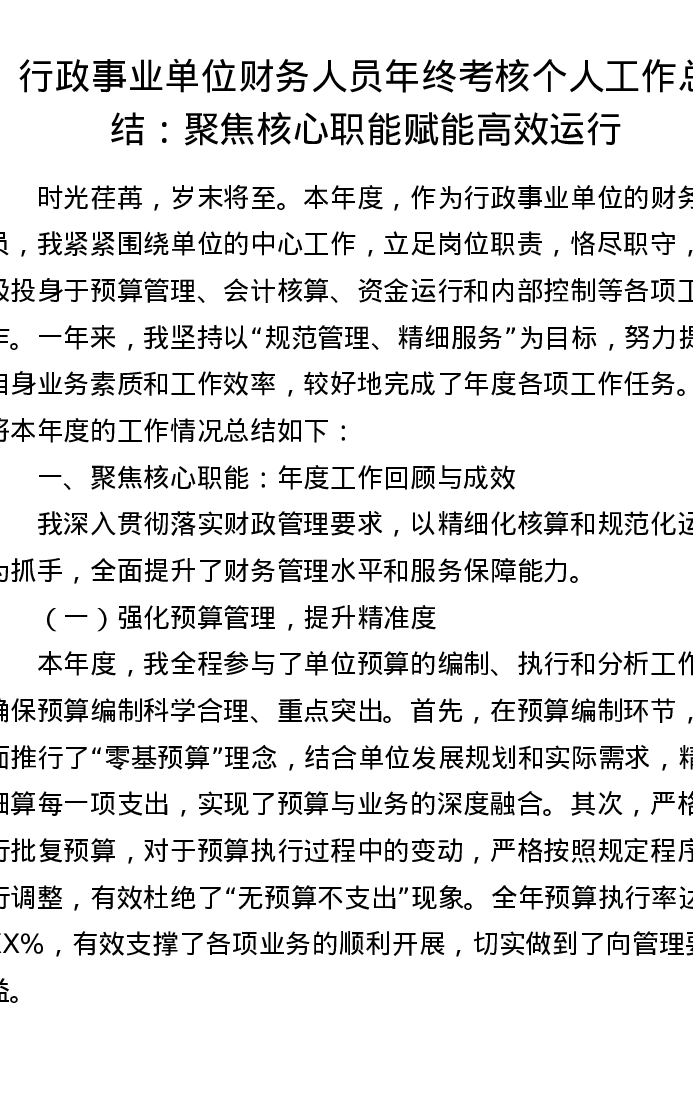 行政事业单位财务人员年终考核个人工作总结:聚焦核心职能 赋能高效运行
