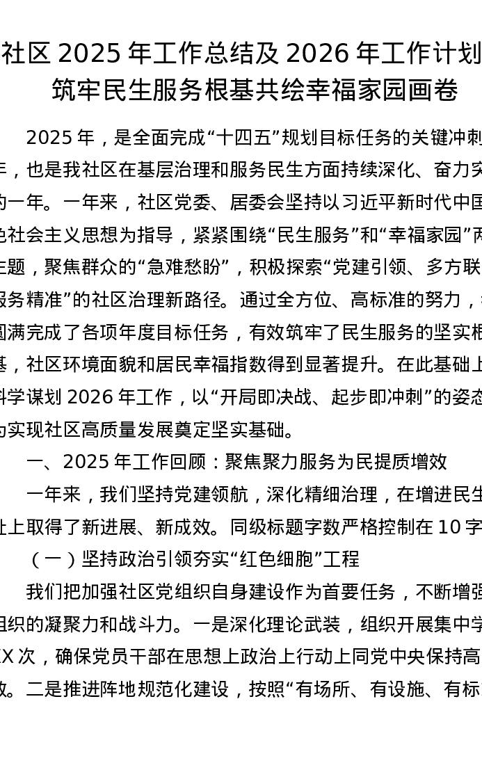 社区2025年工作总结及2026年工作计划:筑牢民生服务根基 共绘幸福家园画卷
