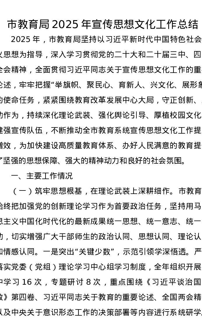 市教育局2025年宣传思想文化工作总结