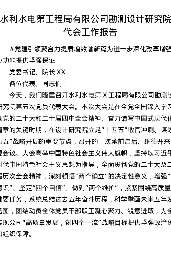 水利水电第工程局有限公司勘测设计研究院党代会工作报告