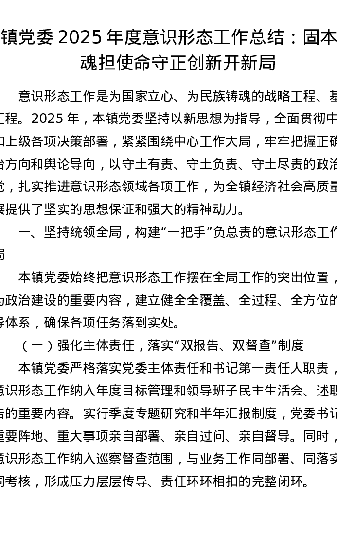 镇党委2025年度意识形态工作总结:固本铸魂担使命 守正创新开新局