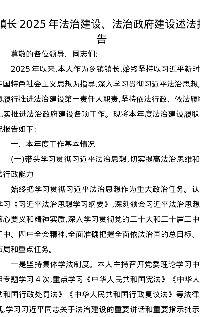 镇长2025年法治建设、法治政府建设述法报告