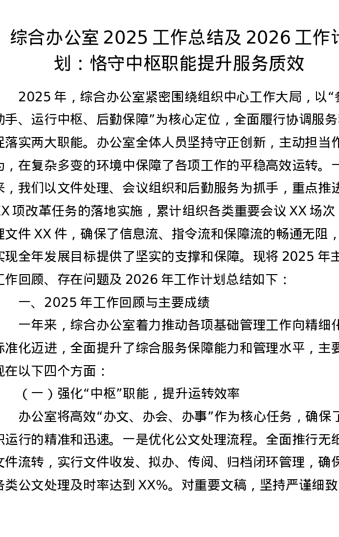 综合办公室2025工作总结及2026工作计划:恪守中枢职能 提升服务质效