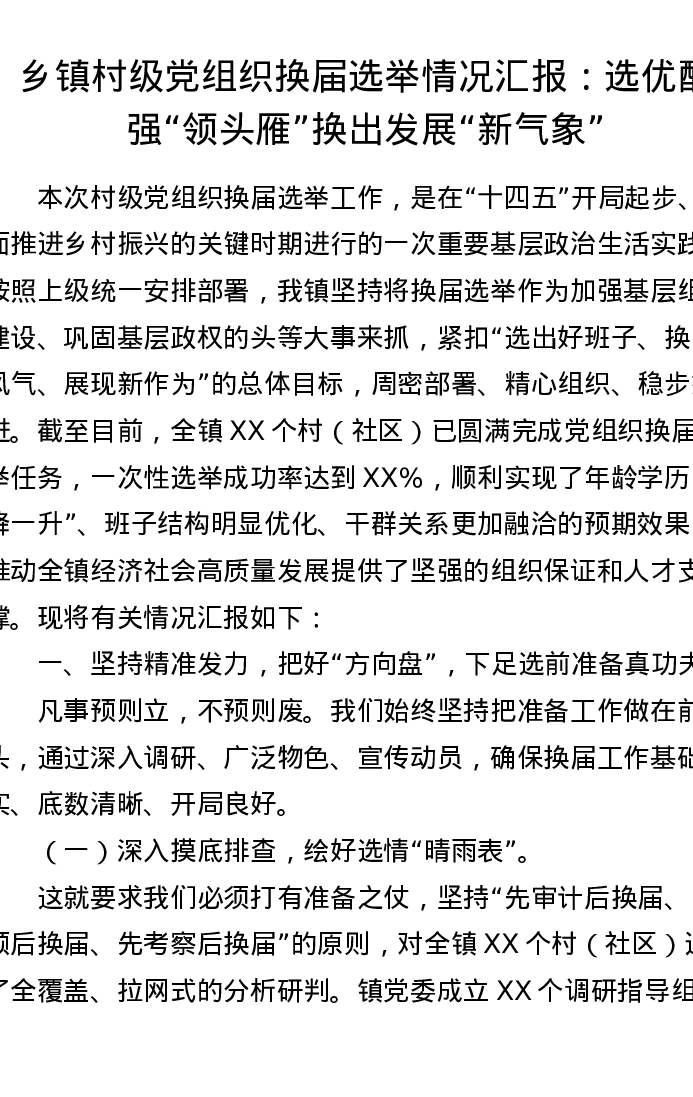 乡镇村级党组织换届选举情况汇报:选优配强“领头雁” 换出发展“新气象”