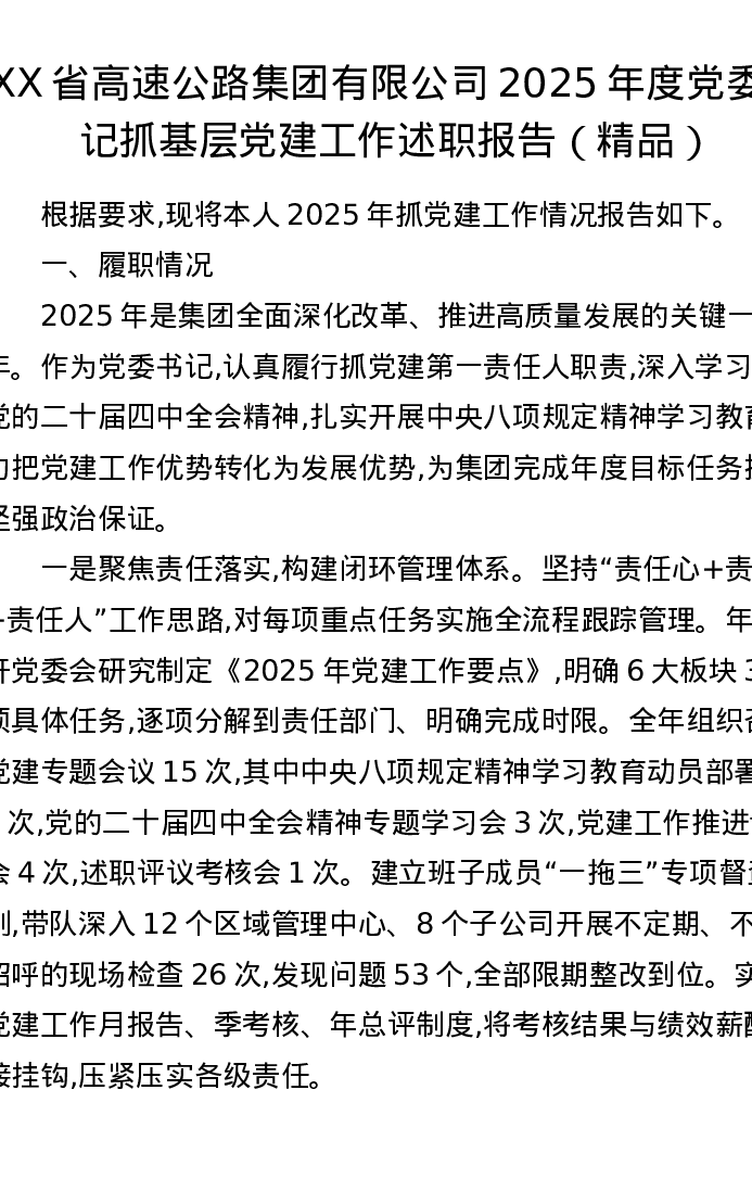 XX省高速公路集团有限公司2025年度党委书记抓基层党建工作述职报告