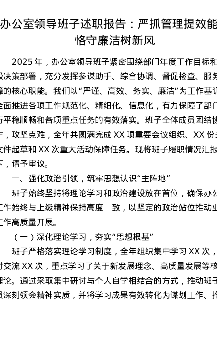 办公室领导班子述职报告:严抓管理提效能,恪守廉洁树新风