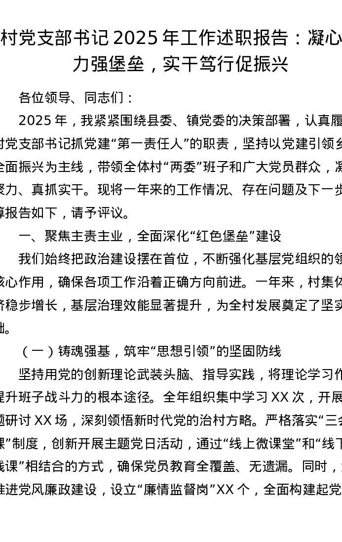 村党支部书记2025年工作述职报告:凝心聚力强堡垒,实干笃行促振兴