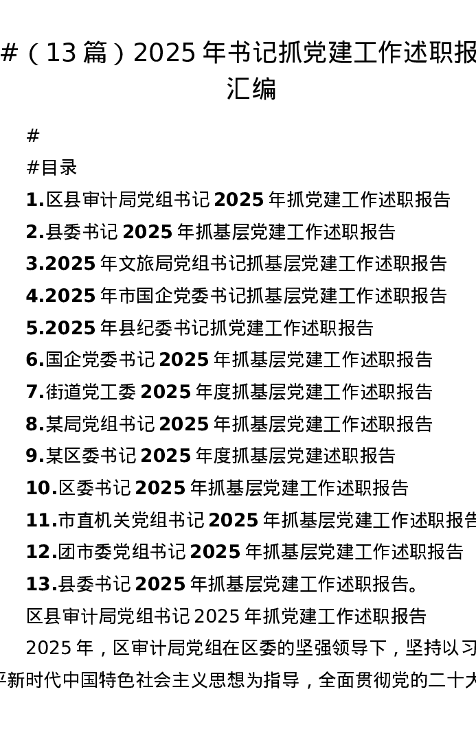 汇编:2025年书记抓党建工作述职报告13篇