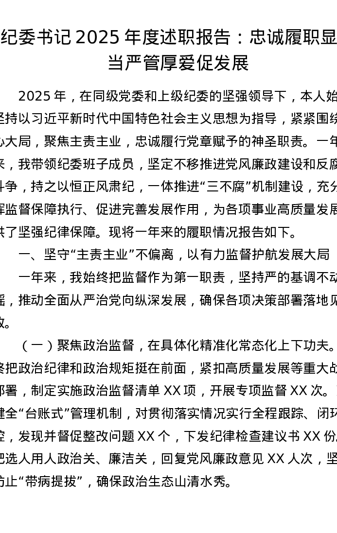 纪委书记2025年度述职报告:忠诚履职显担当 严管厚爱促发展