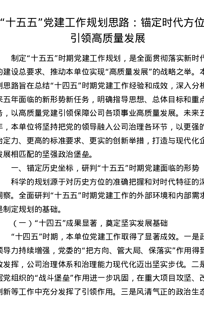 “十五五”党建工作规划思路:锚定时代方位,引领高质量发展