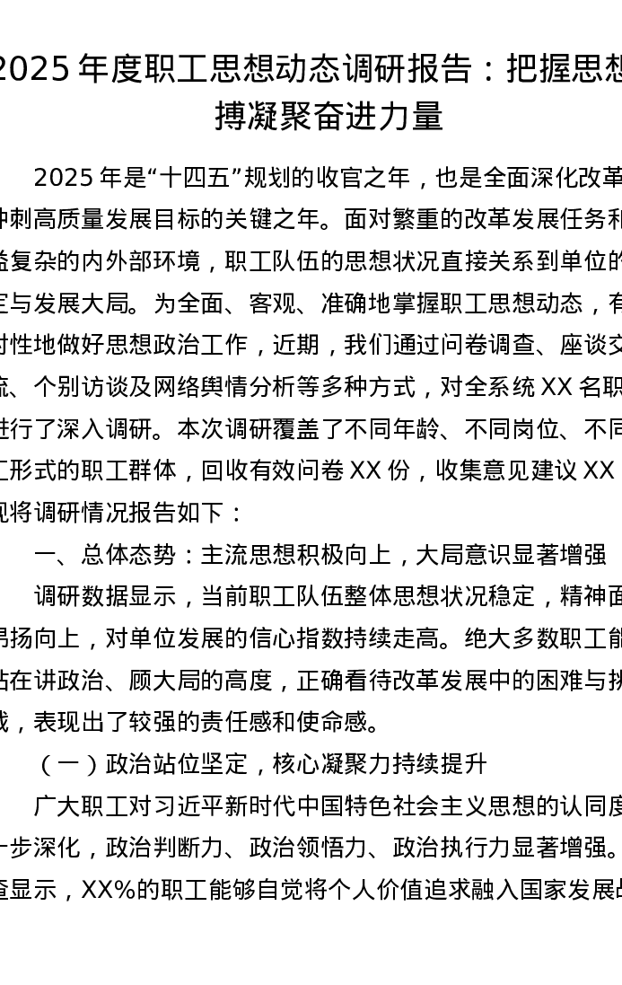 2025年度职工思想动态调研报告:把握思想脉搏 凝聚奋进力量